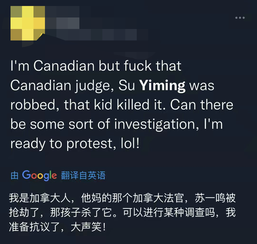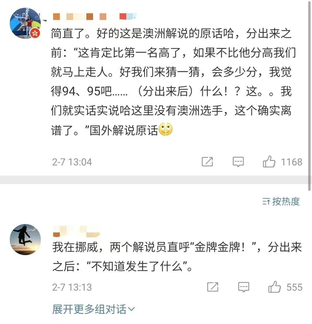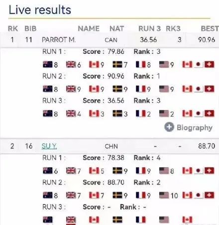 回看裁判打分,加拿大裁判一直打出低分。苏翊鸣第一跳他给出5分,而瑞典、法国裁判给9分。第二跳,加拿大裁判给苏翊鸣7分,美国裁判给10分,瑞典和法国裁判给9分,而获得金牌的加拿大选手前两跳时,这名加拿大裁判都给了9分。