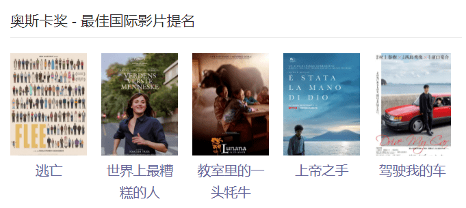 丹麦导演乔纳斯·波尔·拉斯穆森(Jonas Poher Rasmussen)执导,好莱坞影星里兹·阿迈德(也是英语版本的配音演员)担任制片人的动画形式纪录片《逃亡》一共获得了三项奥斯卡提名。除了最佳国际影片外,它还拿到了最佳纪录长片、最佳动画长片的提名,这是奥斯卡有史以来第一次有电影同时提名这三个奖项。