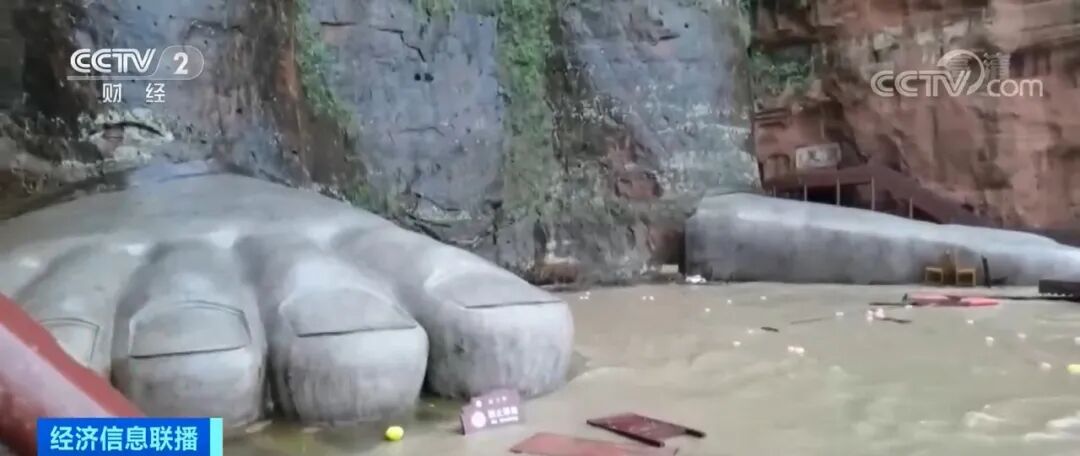2020年因洪水而洗脚的乐山大佛。来源/央视新闻截图