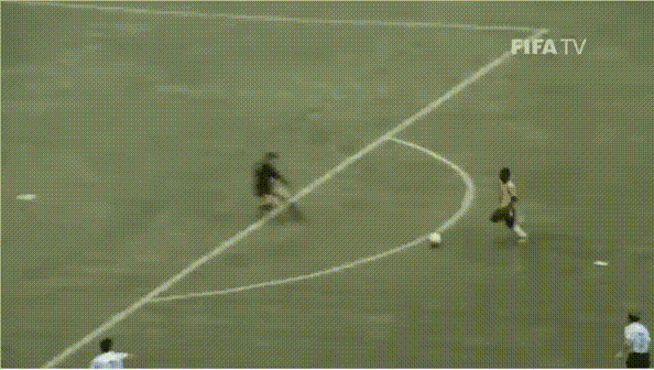 ▲1970年世界杯半决赛, 贝利面对乌拉圭门将的“No Touch”过人。