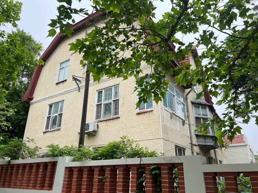 由于树木的阻隔,无法窥见建筑的全貌,紧锁的大门,也隔绝了外面的繁杂。1号曾是德国人威廉·乔治的乔治公寓,后作为美国驻青岛总领事馆,总领事为司派克。这栋建筑平面清晰,立面装饰也趋向简洁,保留了高大的山墙、老虎窗,开放式的明廊,显得更加自由和灵动。